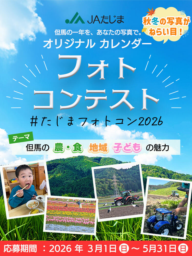 美しい山・川・海に恵まれ、昼夜の寒暖差が大きい但馬は、甘み・旨みが自慢のお米・野菜・果物の宝庫です。