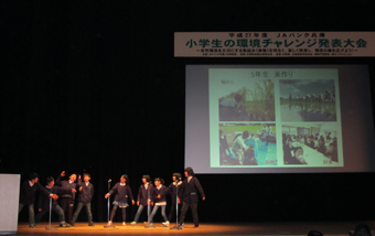 JAバンク兵庫が主催する小学生の環境チャレンジ発表大会(地区大会)が県内4会場で開かれました。環境保護活動に取り組む兵庫県内の小学生が活動成果を発表するもの。応募した397校の中から25校の児童らが参加しました。