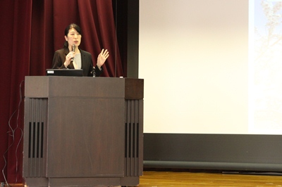 総会ではこのほか、管理栄養士でフィットネスインストラクターの稲垣美穂さん(写真)が、「心も体も元気になる運動と食生活~今日からできる!簡単!元気で暮らす秘訣~」と題して講演しました。