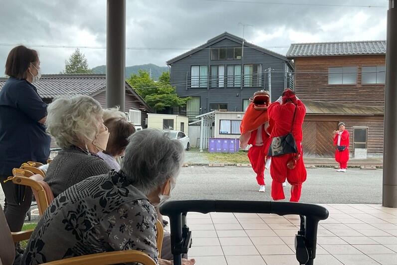 9月29日に七釜地区の祭りがあり、榊と麒麟獅子がデイサービスに訪問してくれました。