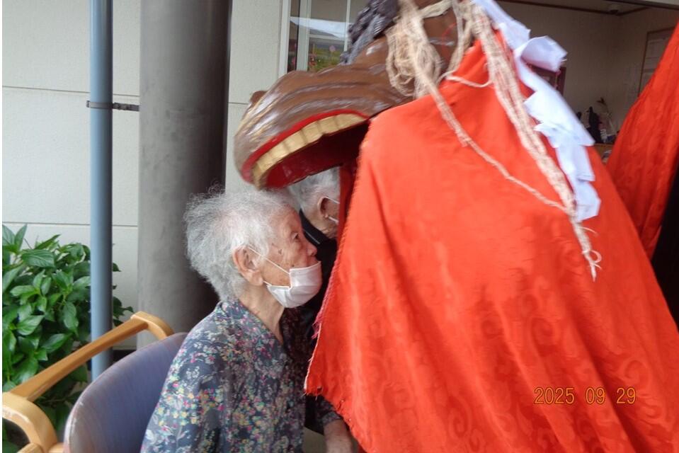 七釜地区の秋祭りの日に毎年来ていただいており、地域の方々と交流を深め、ご利用者様の健康を祈願していただいております。