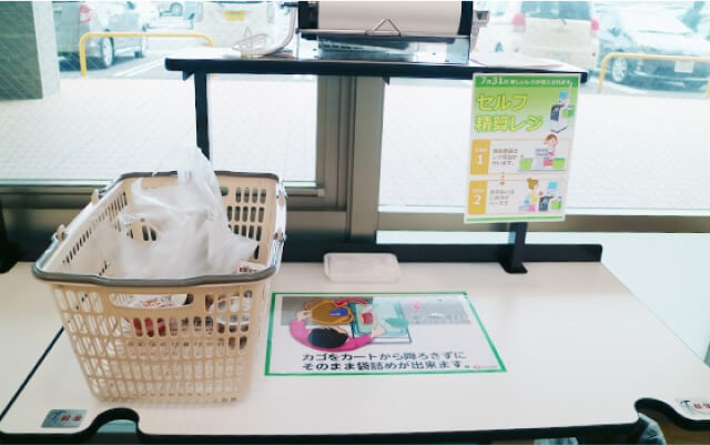 レジ担当者が商品登録(バーコード登録)をしますので、お支払いはセルフ清算レジでお願いします。